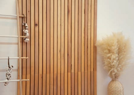 Pionowo ułożone drewniane lub drewnopodobne szczebliny są aktualnie wnętrzarskim hitem. Pojedyncze lamele mają przeciętnie szerokość 5-6 cm. Odstępy między listewkami w panelach muszą być czytelne, więc często odpowiadają grubości lameli – wynoszą najczęściej 2-3 cm. Lamele mogą mieć też bardzo luźny rozstaw, ale dotyczy to raczej grubych elementów. Szczebliny mogą tworzyć konstrukcje ażurowe – wówczas stosuje się je w formie przepierzeń oraz ścianek oddzielających aneksy i zakątki wnętrza. Producenci sprzedają lamele w postaci pojedynczych listew do naklejania na ścianę lub w formie gotowych do użycia konstrukcji. Lamele są wtedy w regularnych odstępach przymocowane do płyty, którą montuje się na ścianie – to tzw. panele lamelowe lub ryflowane panele ścienne. Wykonuje się je z różnych rodzajów drewna, zarówno rodzimego, jak i egzotycznego, co umożliwia uzyskanie okładzin w bogatej palecie kolorów oraz unikatowych wzorach usłojenia.