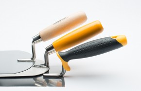 | Trwałe łączenia trzonka z blatem gwarantuje żywotność narzędzia | Wybór rajberki powinien być uwarunkowany jej przeznaczeniem, gdzie gładkie stosuje się do mas gipsowych, a zębate do mas klejowych | Blat szpachelki dzięki sprężystym właściwościom sprzyja wydajnej pracy |
