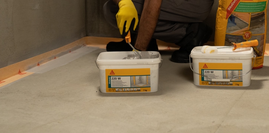 Łazienkę można podzielić na dwie strefy: mokrą i wilgotną. Do pierwszej zalicza się każde miejsce narażone na bezpośrednie działanie wody, czyli sąsiedztwo kranu, brodzika, przestrzeń nad i pod wanną, a nawet całą podłogę. Tutaj niezbędne jest wykonanie izolacji wodoszczelnej, na przykład na bazie płynnej membrany hydroizolacyjnej Sikalastic-220 W. To gotowa do użycia, jednoskładnikowa, płynna membrana na bazie wodorozcieńczalnej żywicy. Dzięki swoim właściwościom skutecznie zabezpiecza powierzchnie nawet wewnątrz kabin prysznicowych i sanitariatów.