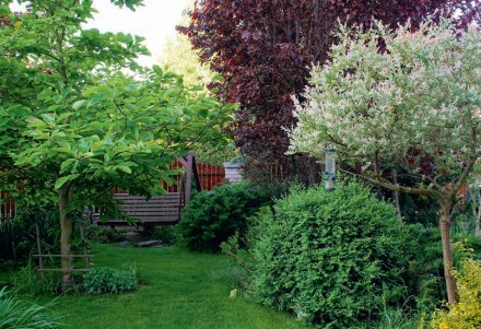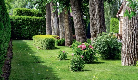 Planując rabaty czy inne nasadzenia w cieniu, warto sięgać po rośliny o zróżnicowanej wysokości. Niższe i barwniejsze warto usytuować bliżej ścieżek, natomiast wyższe oraz jednolite kolorystycznie wykorzystajmy jako ich tło. Duży wpływ na atrakcyjność aranżacji mają kształt, pokrój, faktura i kolorystyka liści oraz barwa kwiatów czy owoców – jasne i soczyste odcienie rozświetlą i ożywią tonące w mroku zakątki ogrodu. Godne uwagi są cieniolubne byliny. Te z grupy zadarniających będą pięknie wyglądać pod drzewami oraz tam, gdzie nie ma szans na bujny trawnik. Mogą to być barwinek pospolity, bluszcz pospolity, dąbrówka rozłogowa czy gajowiec żółty i konwalia majowa. Na rabaty z długiej listy cieniolubnych bylin warto wybrać funkie, paprocie, bergenię sercowatą, fiołek wonny, dziurawiec, tawułkę Arendsa oraz ciemierniki. Ich ozdobą będą też kosaciec syberyjski, szafirki czy jaskier ogrodowy oraz zawilec leśny. W budowaniu kompozycji dobrze jest wykorzystać pnącza np. bluszcz pospolity, niektóre odmiany powojników czy kokorniak wielkolistny. Zakątki wymagające rozjaśnienia ozdóbmy kwitnącymi na biało przywarką japońską lub hortensją pnącą. W cieniu świetnie sobie poradzą liczne krzewy i drzewa. Do bardzo ozdobnych należą cisy: pospolity i pośredni. Okazy żeńskie obsypują jaskrawoczerwone nasiona pięknie kontrastujące z zielenią igieł. Chętnie wykorzystywane są także mahonia pospolita, laurowiśnia wschodnia, azalia japońska, hortensje – bukietowa, dębolistna i ogrodowa – czy kalina sztywnolistna.